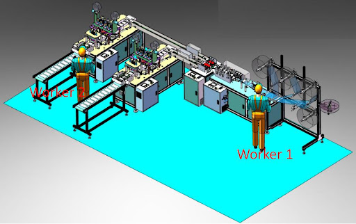Dây chuyền sản xuất khẩu trang y tế bán tự động.